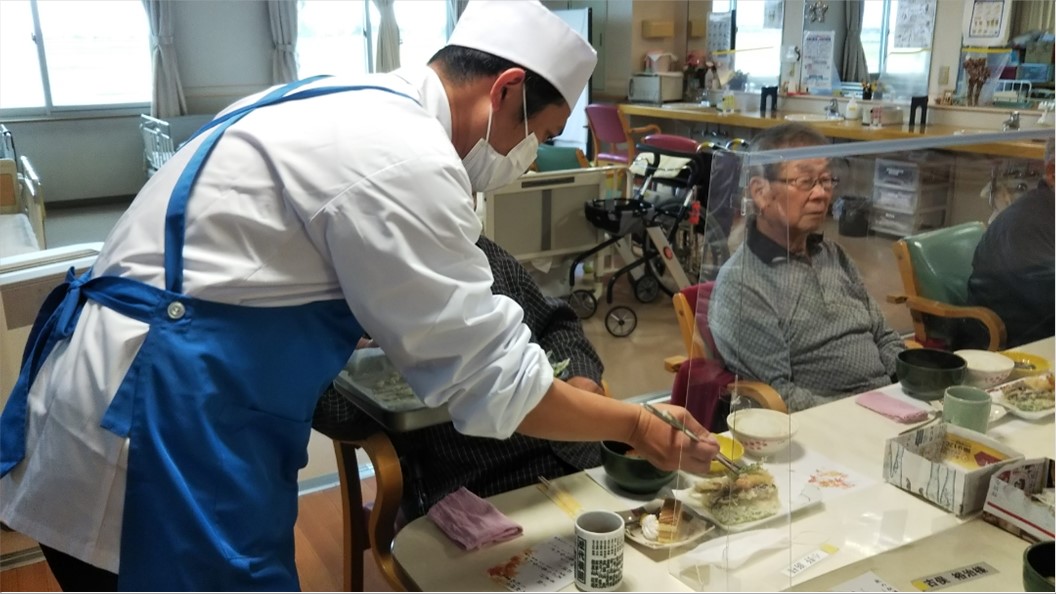 『デイサービスセンター新通』では、おいしい昼食を召し上がって頂きながら、国内外で活動されておられる三味線奏者、史佳様の演奏を聴く会が行われました。