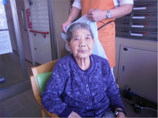 5月、床屋さんが来て下さいました。久しぶりに髪を切られ、皆様サッパリしたご様子でした。
