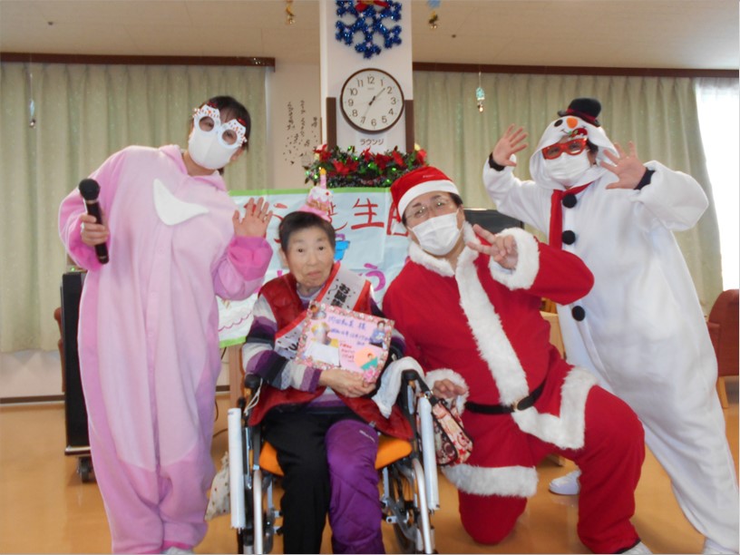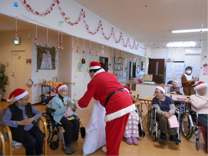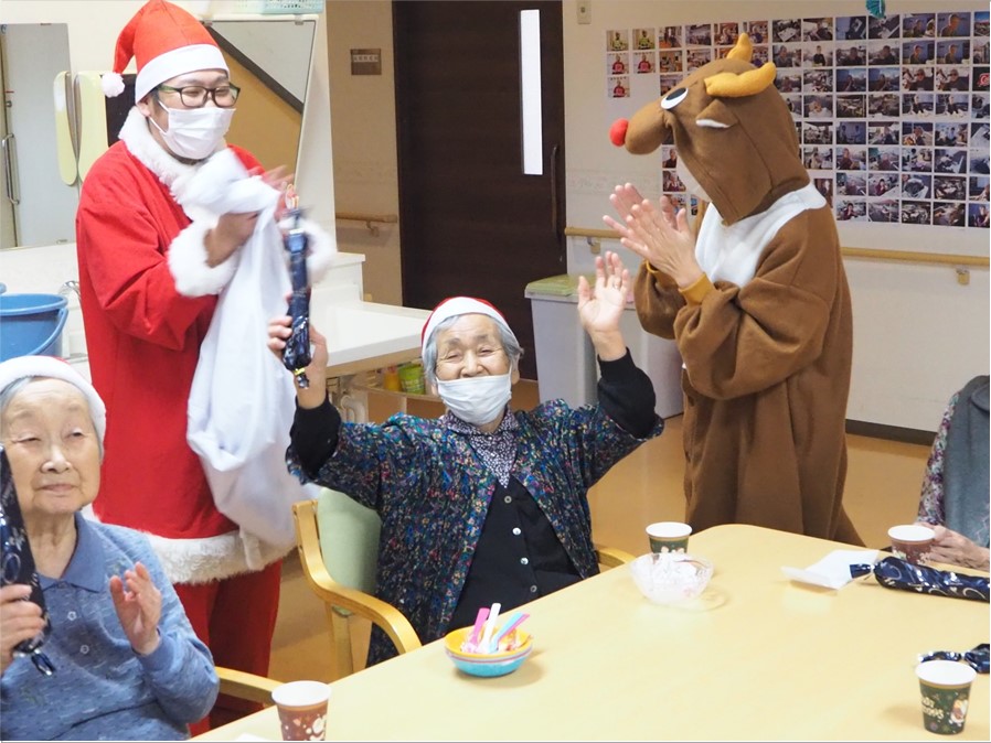また、私たち施設から「これからも毎日楽しく、お元気でお過ごしください」とXmasプレゼントをお一人ずつ進呈させていただきました。