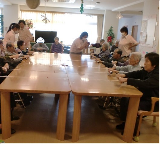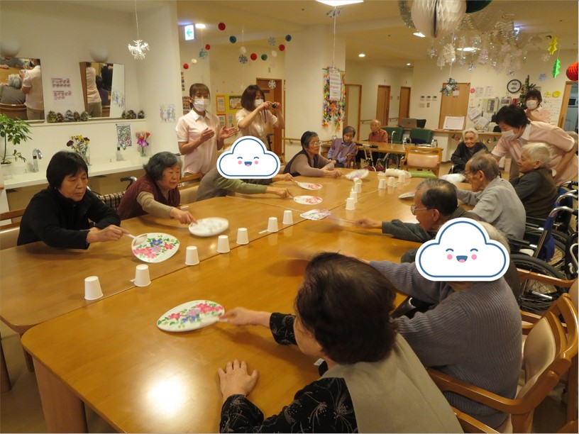 チームが勝ちというゲームです。普段はレクレーションに参加されない方も参加してくださり、白熱したゲームとなりました。