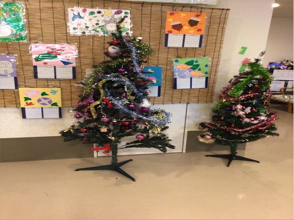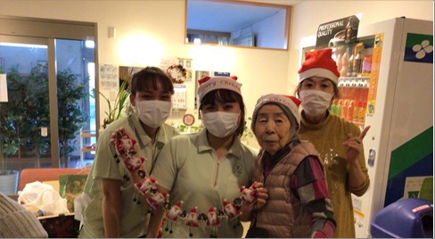 12月24日(金)には、ささやかながらクリスマス会を行いました。施設内の飾りつけは、ご入居者様も手伝ってくださり、施設内が華やかな雰囲気になりました♫