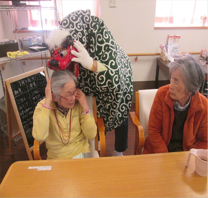 獅子に頭を噛まれる事によってその人についた邪気を食べてくれるいわれており、1年を元気に過ごすことができます。