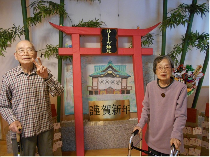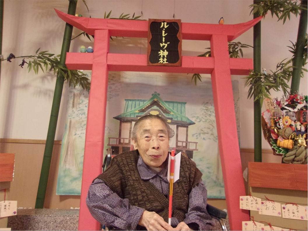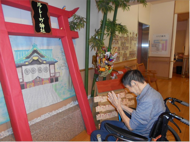 職員力作の神社にご入居者の方々も感動して下さいました。