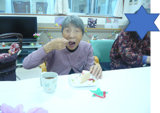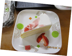 「イチゴケーキだね。美味しいね!!」とパクパク食べていただきました(^^♪