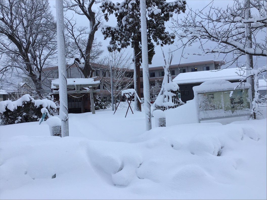リーシェ上越さくらの隣の公園、神社も雪化粧となりました。