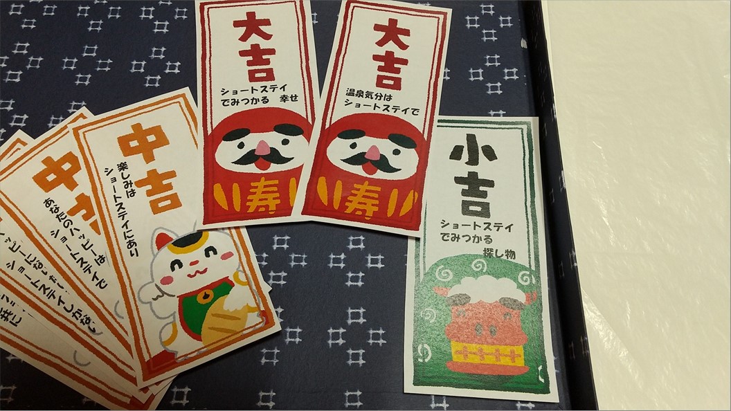 おみくじでは「えええっ・・私は小吉よ 美味しい食事は ショートステイにあり」だって。