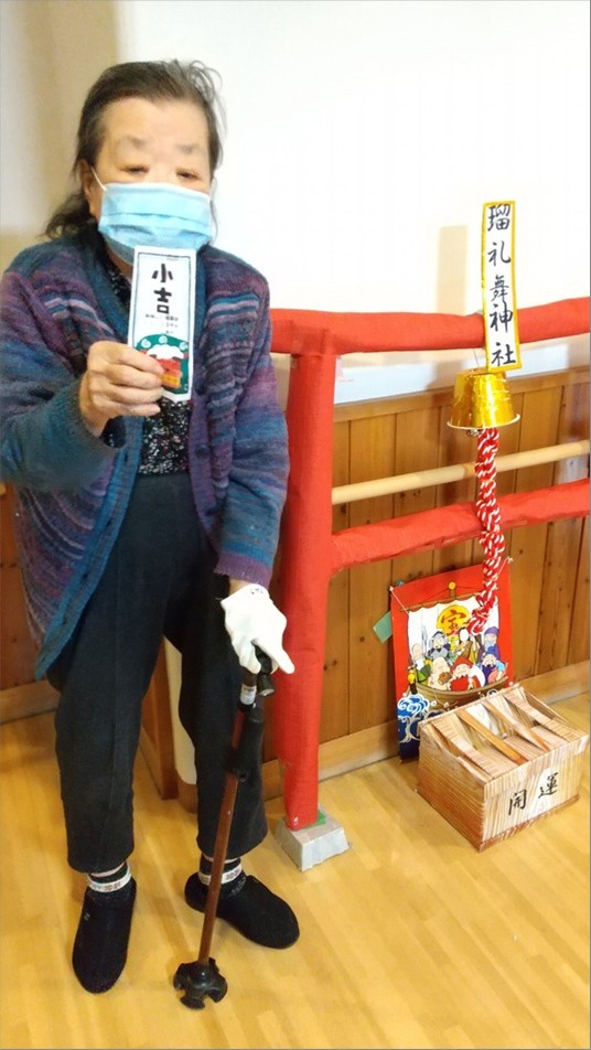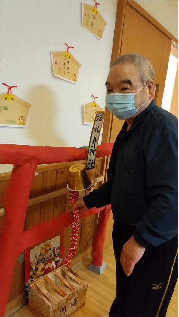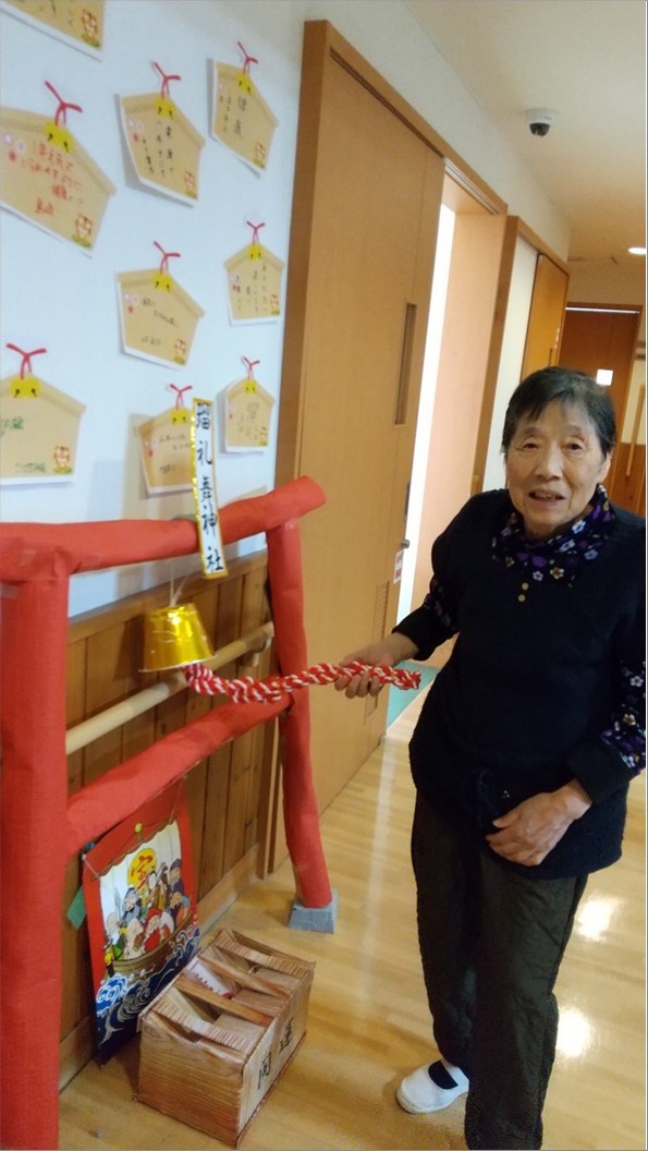 『ショートステイ ル・レーヴ南浦和』では、1月5日に「新年を祝う会」として絵馬に願い事を書き、その後、神社参拝を行いました。