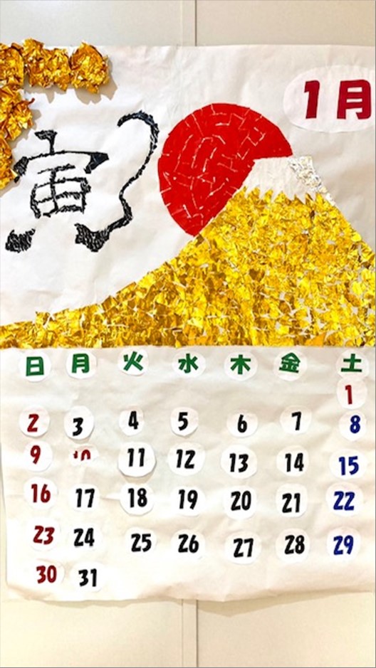 12月に、ご入居者様と一緒に1月のカレンダーを作成しました。