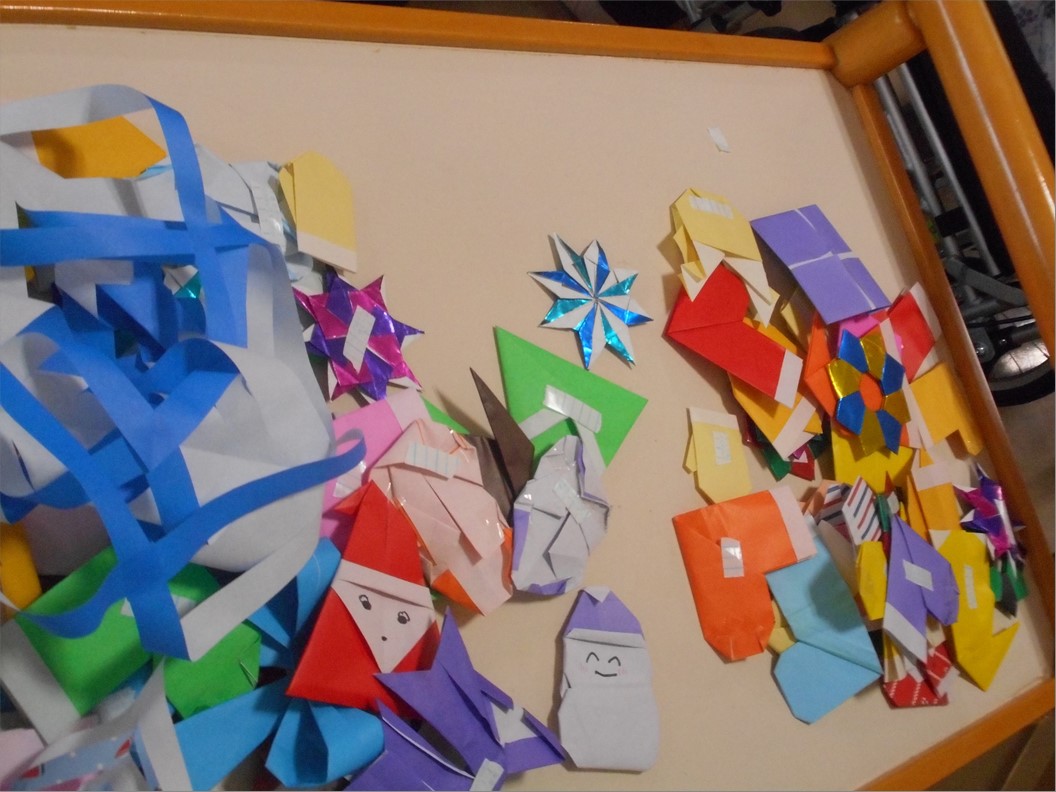 ツリーの台紙に貼るオーナメントも、学生さん達がたくさん作ってくださいました。
