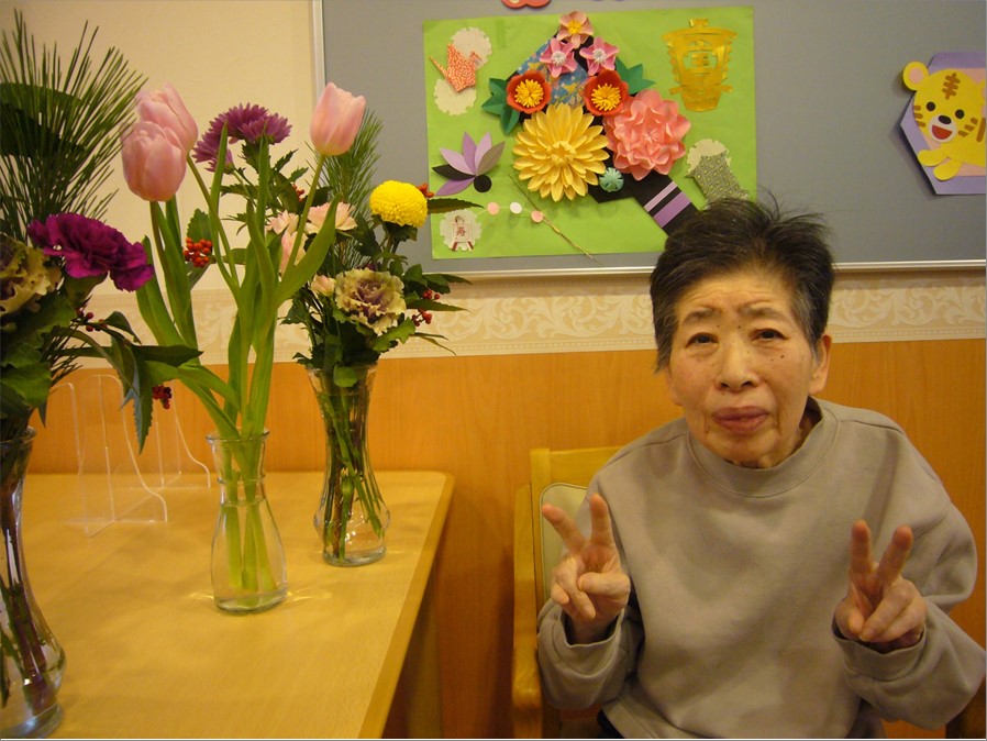最後に、お正月の花々といっしょに記念撮影をさせていただきました。