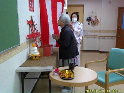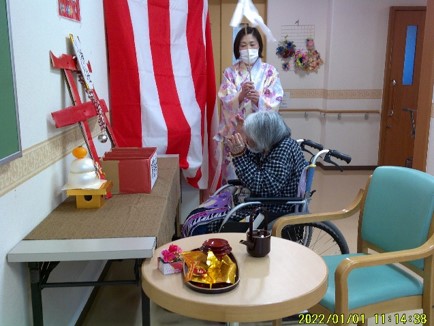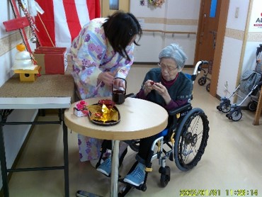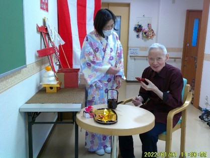 本物の神社の様に、職員が扮する巫女さんからお神酒(甘酒)をいただき、美味しそうに飲まれていました。