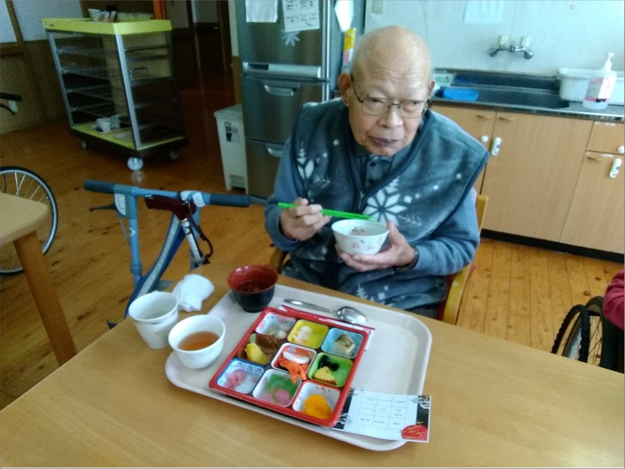 元旦の昼食はとても豪華なおせち料理が出て、ご利用者様が美味しそうに召し上がっていらっしゃいました。