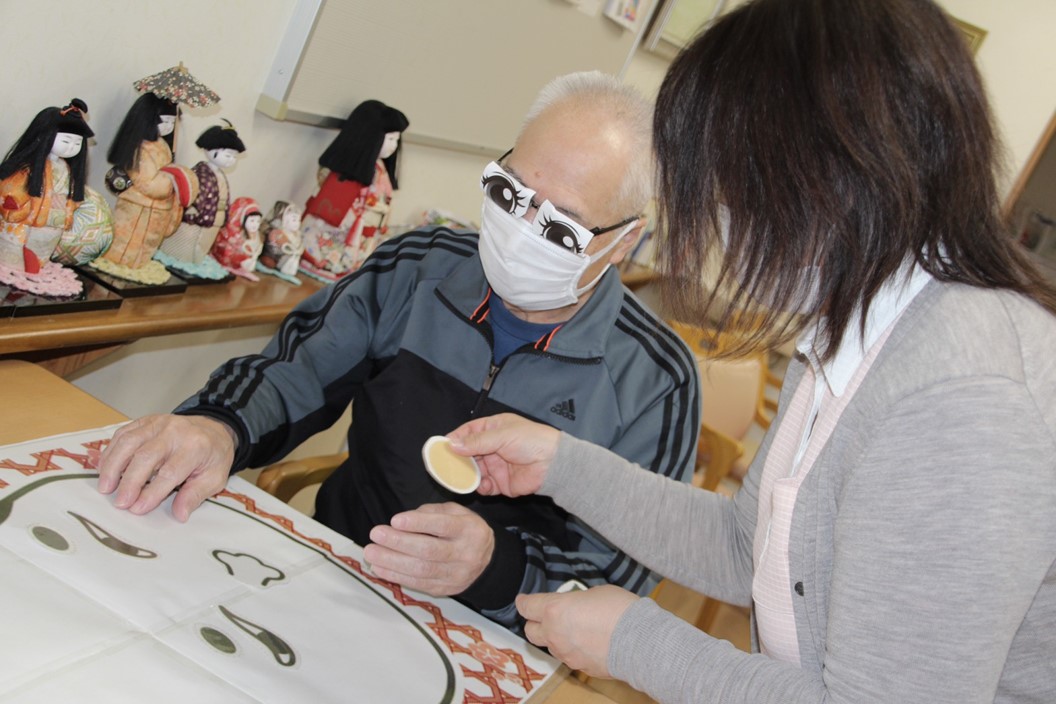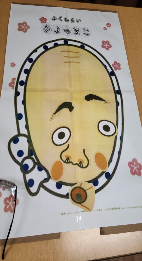 福笑いでは、目隠しをして目・鼻・眉・口をそろえていくのですが・・・目隠しの脇からちょろっと👀