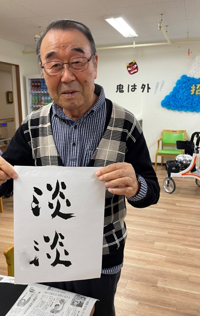 書初めをしている姿を見ると、なぜか筆で文字を書きたくなってしまい、、、ついつい職員もイベント終了後に、好きな文字や言葉を筆に込め、書かせていただきました(笑)