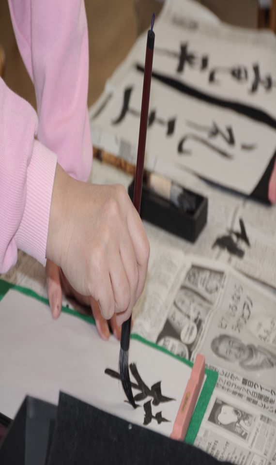 書初めでは、各々書きたい文字を筆に込め、書いていただきました。