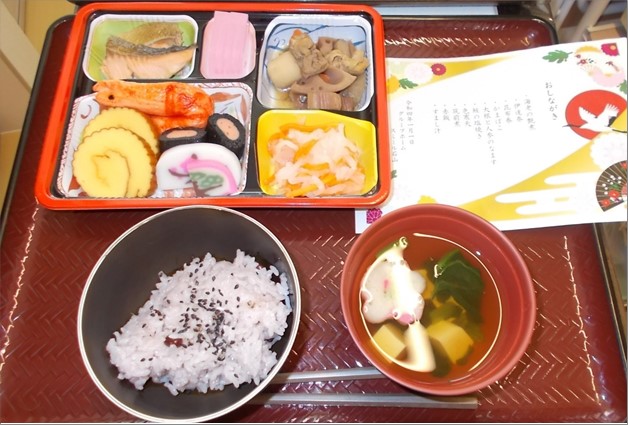 正月のごちそうと言えば、おせち料理です!元日の昼食に提供いたしました。1月7日の朝食には七草粥を皆様には召し上がって頂きました。