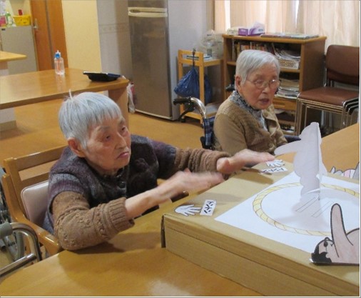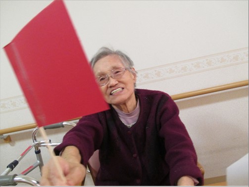 2日は「新春★紅白旗上げ体操」行いました。お正月の豪華なお食事が続いたので「動かなきゃ!」と張り切って運動をされていました。