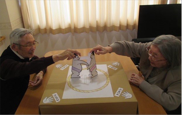 元旦に行った令和4年最初のレクリエーションは「トントン相撲大会ゆうきゅう館場所」です。