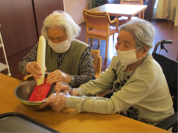 「昔よくやったからね。昔を思い出して楽しいよ。」「私はもっと大きいのが食べたい!これじゃ小さいよ。」と和気あいあいと作られていました。