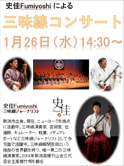 1月26日(水)に『ローベル西荻窪』で三味線コンサートを行って頂きました。