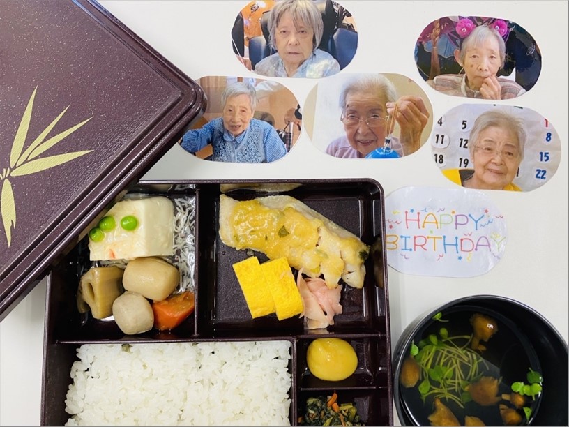 『ル・レーヴ狭山さくら館』では、お誕生日会の日にお弁当形式でお食事を提供しております。 今月のバースデイランチをご紹介いたします!!