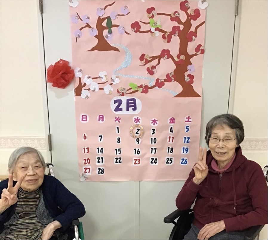 先日のブログで2月のカレンダーをご入居者様と一緒に制作しているご様子をお伝えしました。