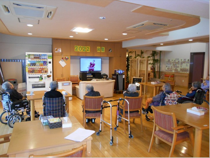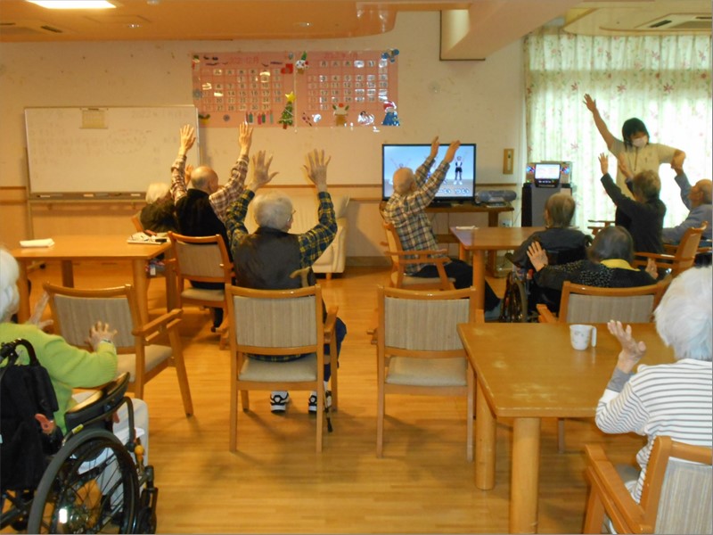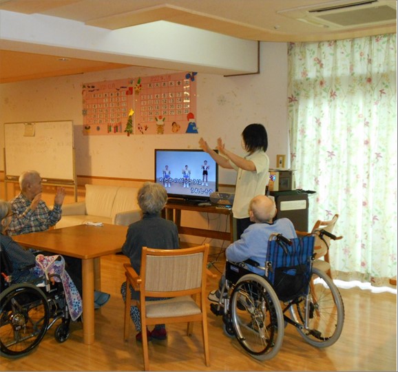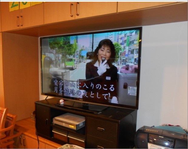 まずは体操レク。各フロアではエルダーシステムを利用したTV体操をおこなっています。