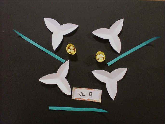 それぞれ各パーツは事前に職員が丁寧に制作し、利用者様には組み合わせて頂くことで水仙の花が完成するよう準備しました。