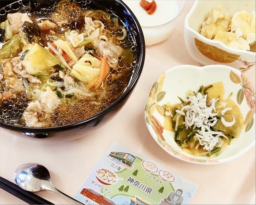 毎月恒例のご当地メニューの日。今月は神奈川県のサンマーメンです。