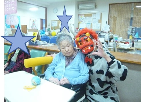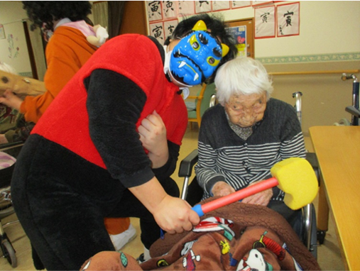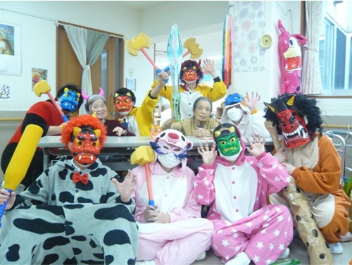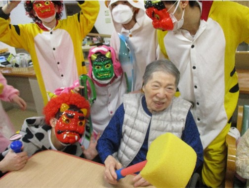 鬼の正体がわかると、入居者様も笑顔で「楽しかったよ」と声をかけていただいてます。