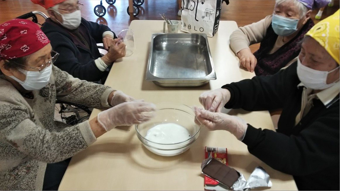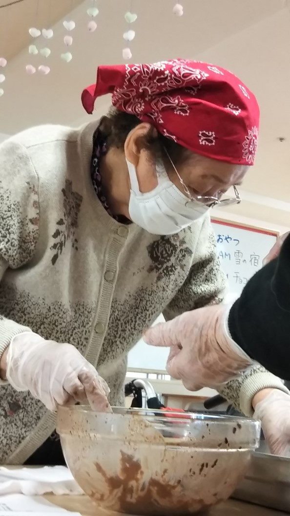 今回はバレンタインということで女性のご利用者様が調理担当です。