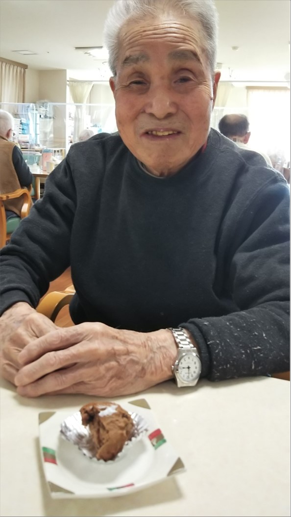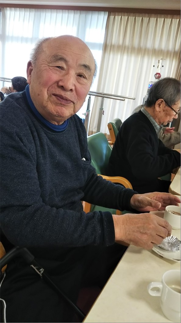 男性のご利用者様は、ほっぺたが落ちてしまいそうなくらいの素敵な笑顔です。