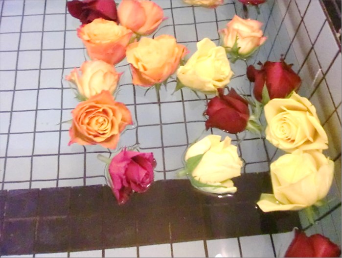浴槽には赤や黄色など様々な色のバラを浮かべ、普段より優雅なお風呂を楽しみ頂けたかと思います。
