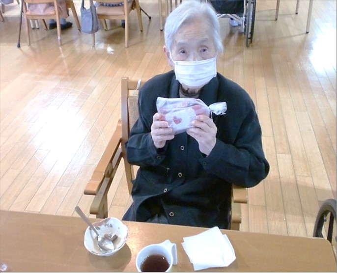 「こんなに食べれるかな…」と声も聞かれました♪ 普段より豪華なおやつの時間となり、その場で召し上がる方もいらっしゃいましたが、ご家族に見せるために持ち帰る方も多くみられました。