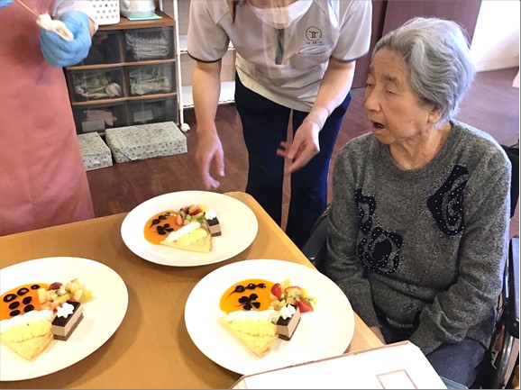 「どこから食べたらいいか、迷っちゃうね。」「きれいだね、美味しいね。」