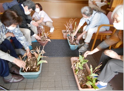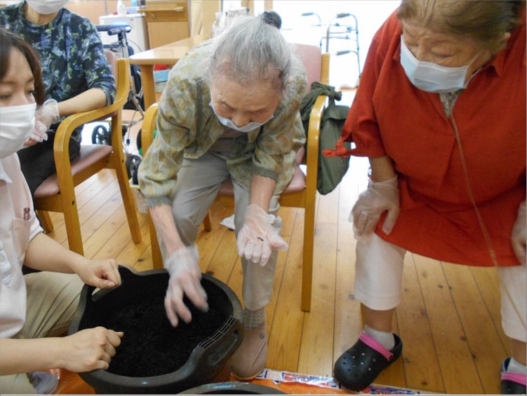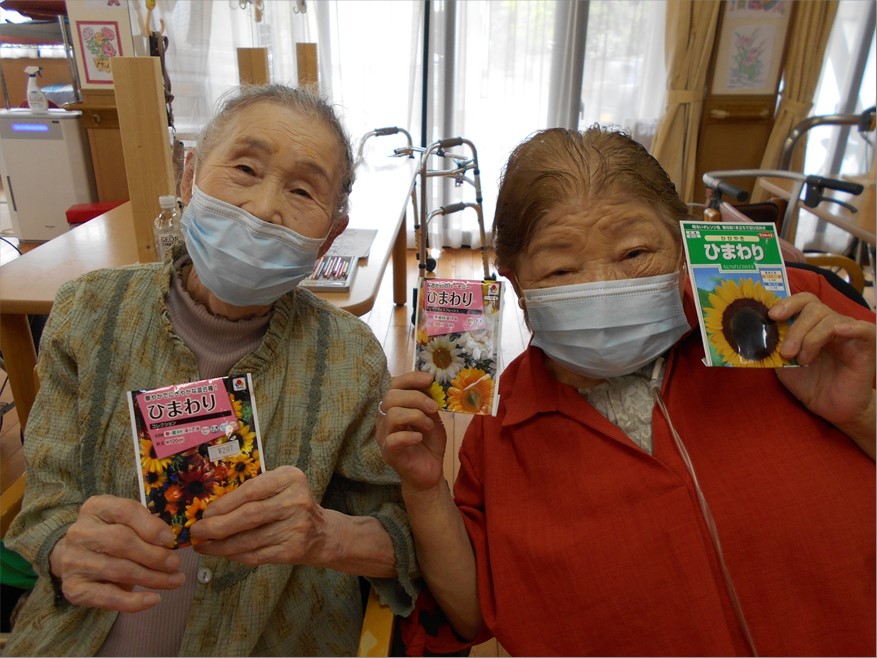 ご利用者様にも、毎月レクリエーションの時間を使って土造りからお願いし、種まき、水やりと、成長を楽しみながらお手伝いいただいています。