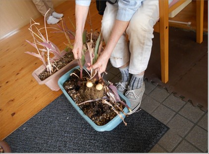 春に楽しんでいただいたチューリップの球根も、皆さんと掘り起こしました🌷