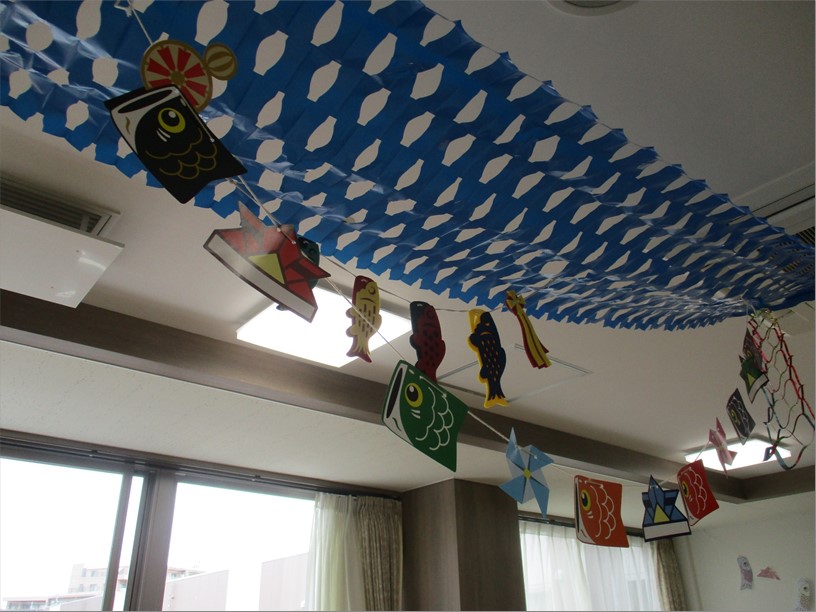 今月は鯉のぼりを飾り、こどもの日を楽しみました。
