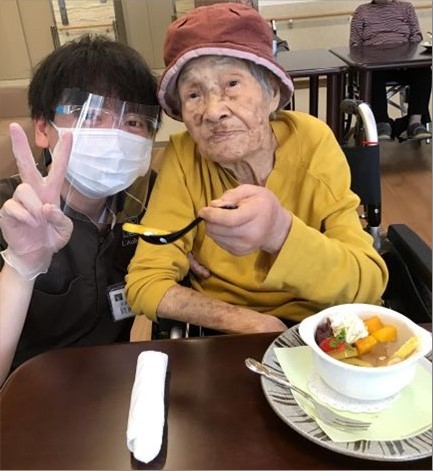ボリューム満点のこのあんみつ、ご入居者様に大好評で中にはあんみつでお腹がいっぱいになってしまい、夕食があまり食べられなかったご入居者様もいらっしゃった程でした(笑)