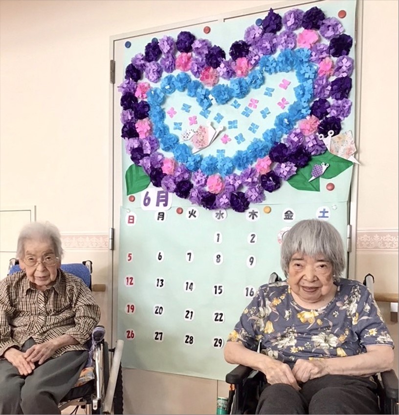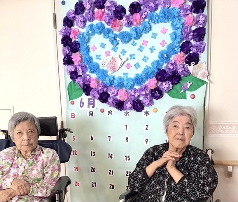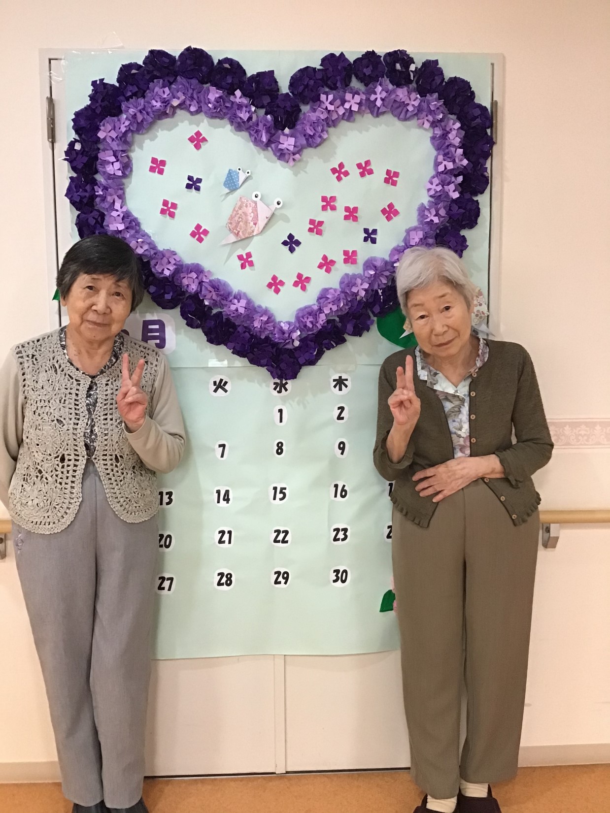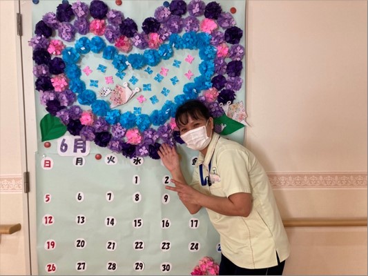 毎月恒例のカレンダー6月【ハートの紫陽花】の完成のご様子です。