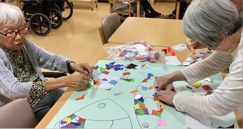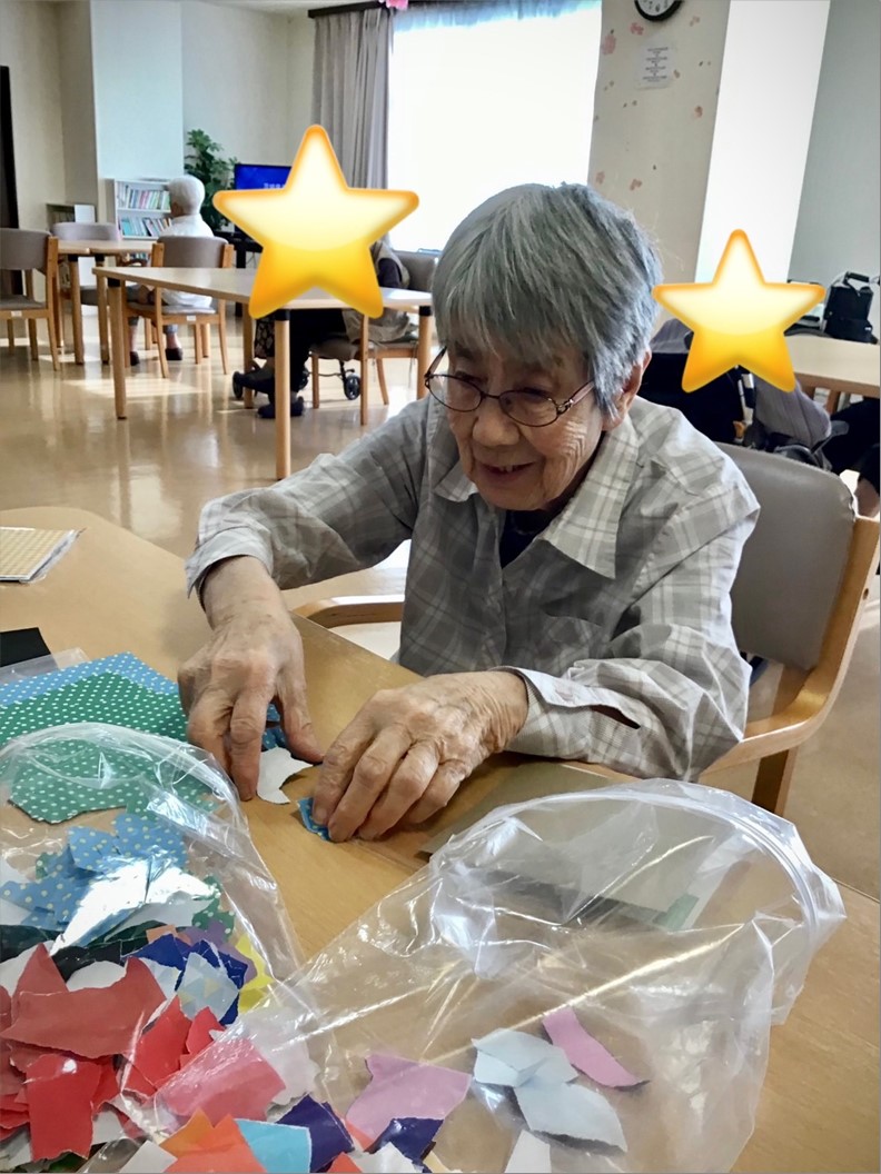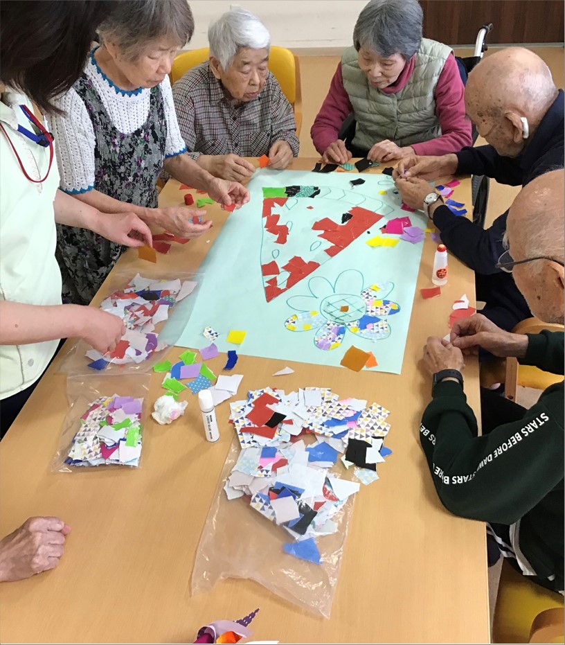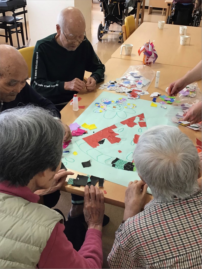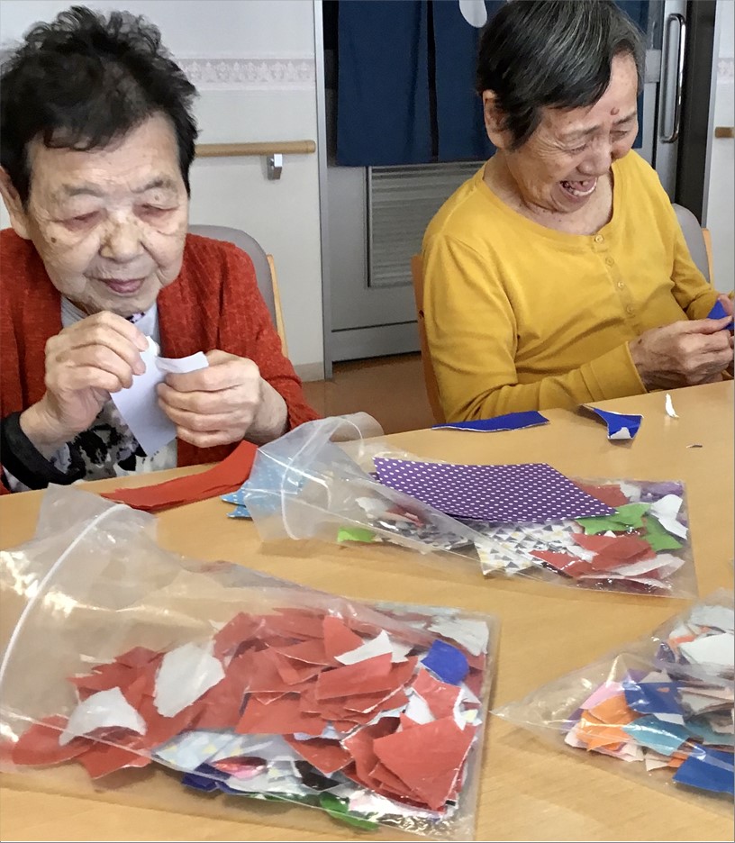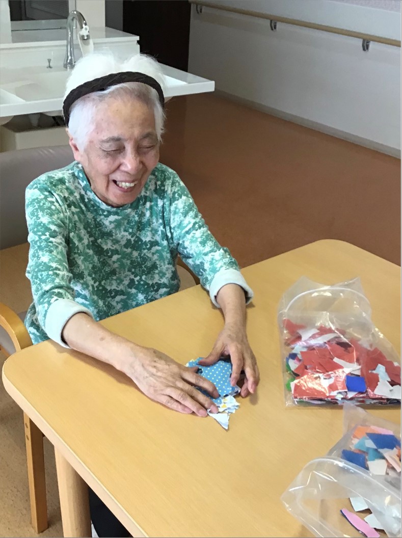 今月は、ちぎり絵で作成です。楽しそうに作成しております。