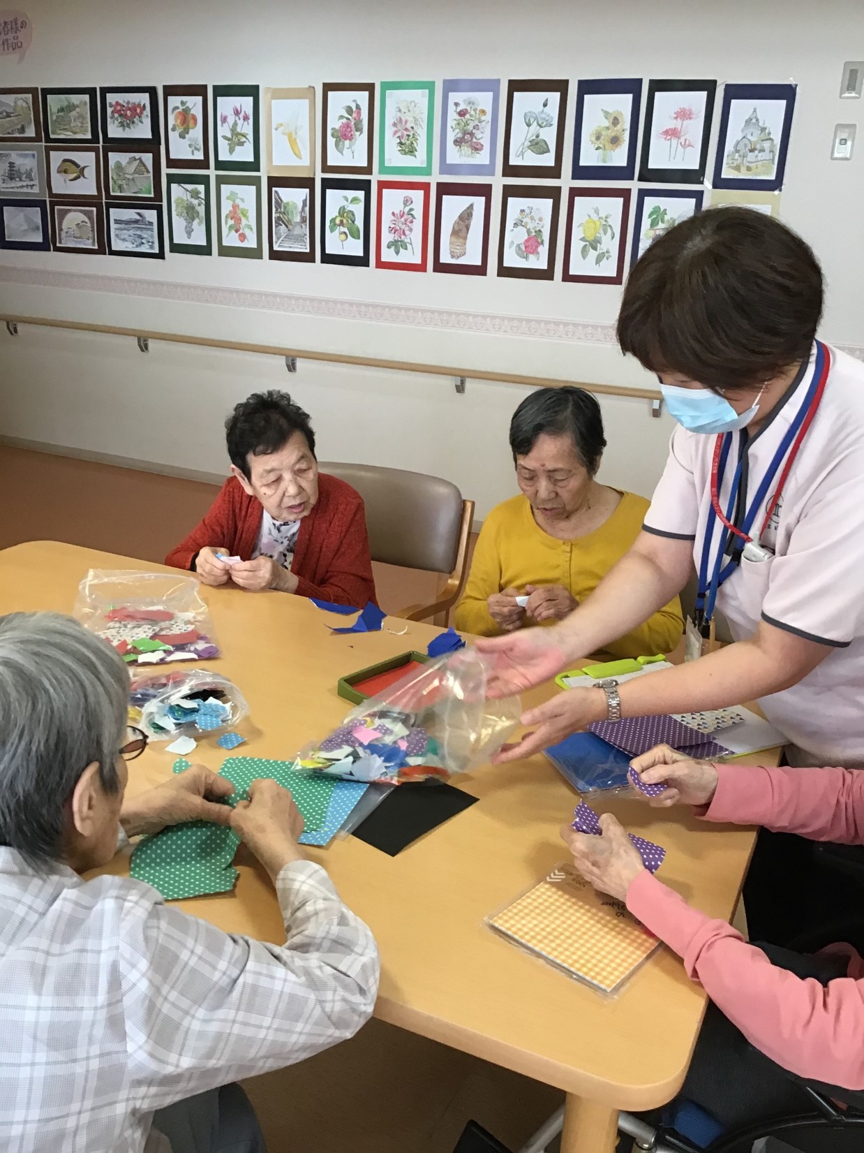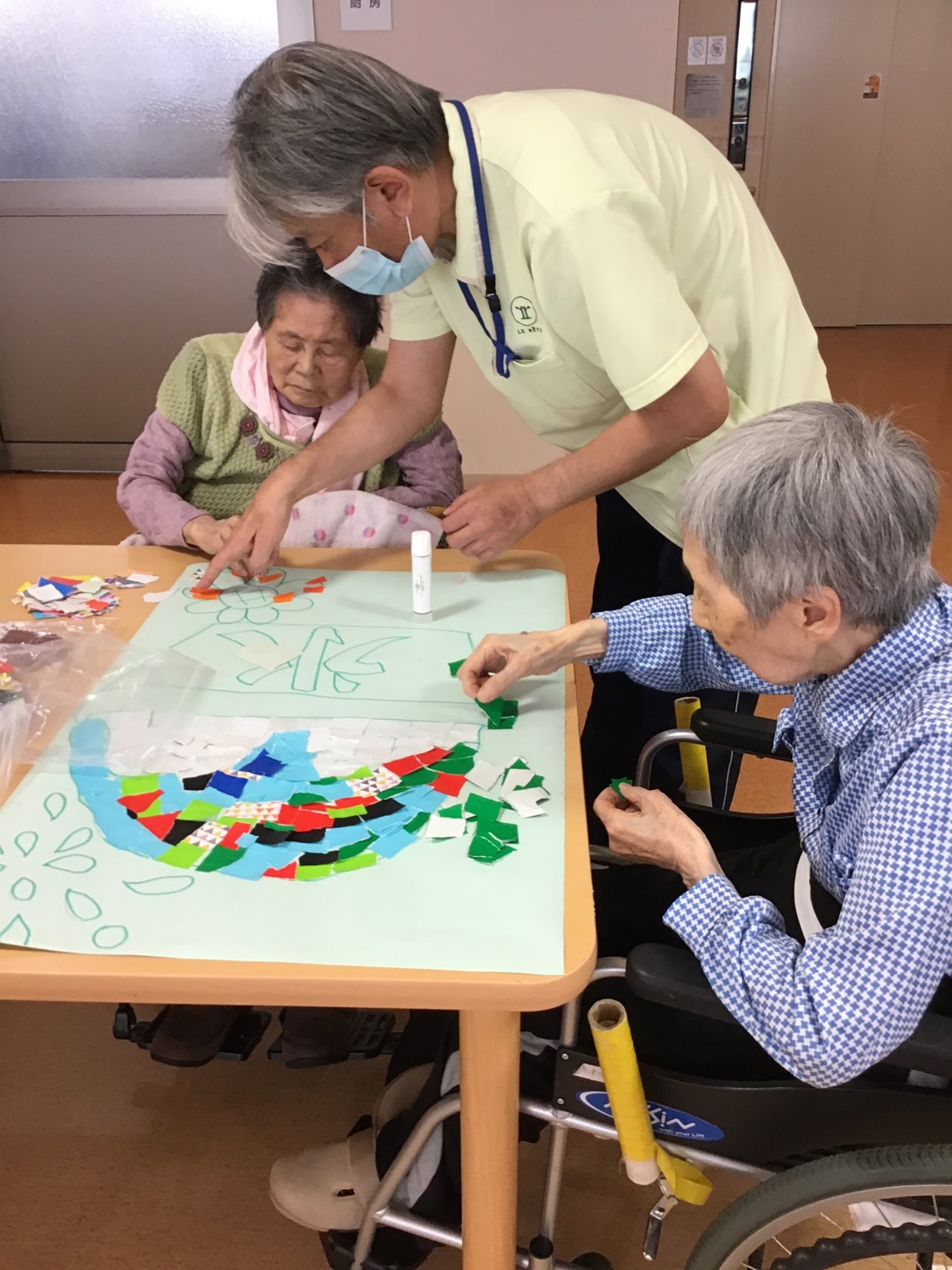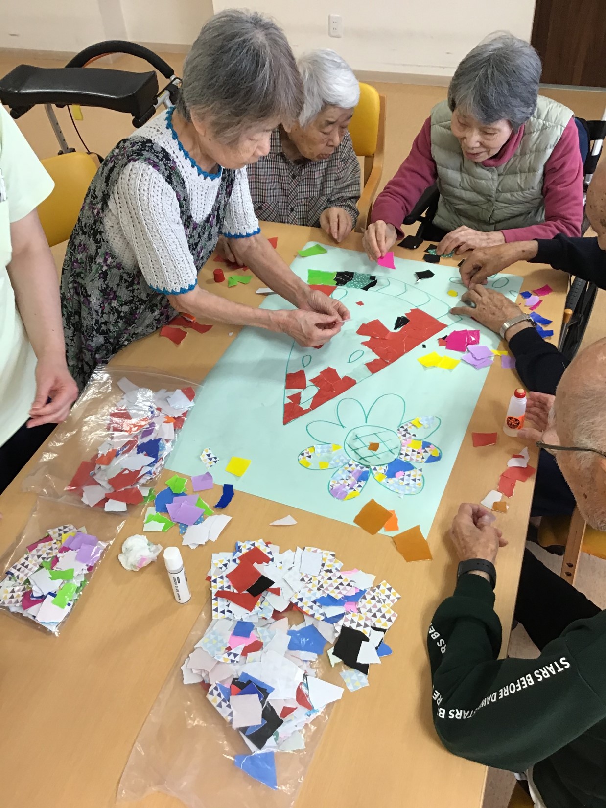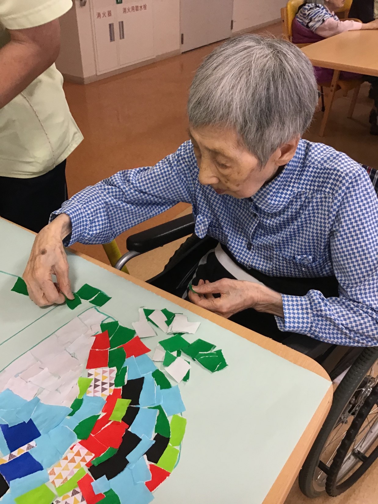 今月は、ちぎり絵で作成です。楽しそうに作成しております。