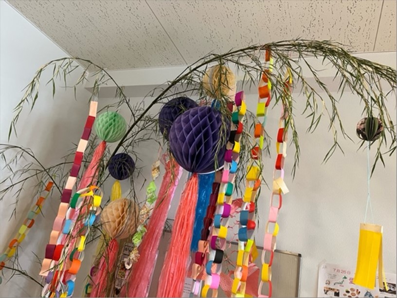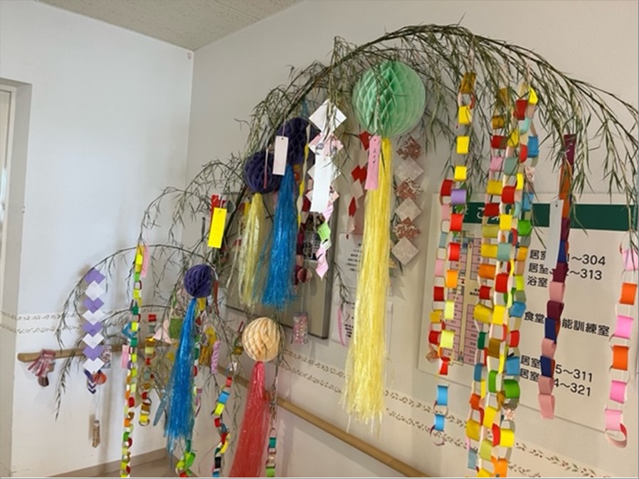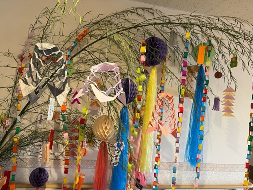 7月7日は『七夕』!!今回はご入居者様と職員が一緒に短冊を書き、飾りを作成しました。