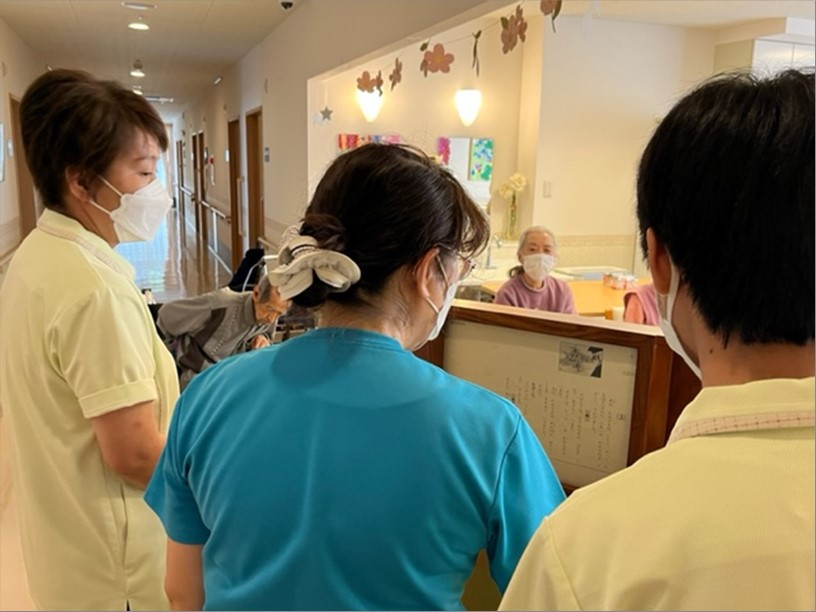 ちょっぴり恥ずかしそうに行う新卒職員に入居者様はホッコリ!!