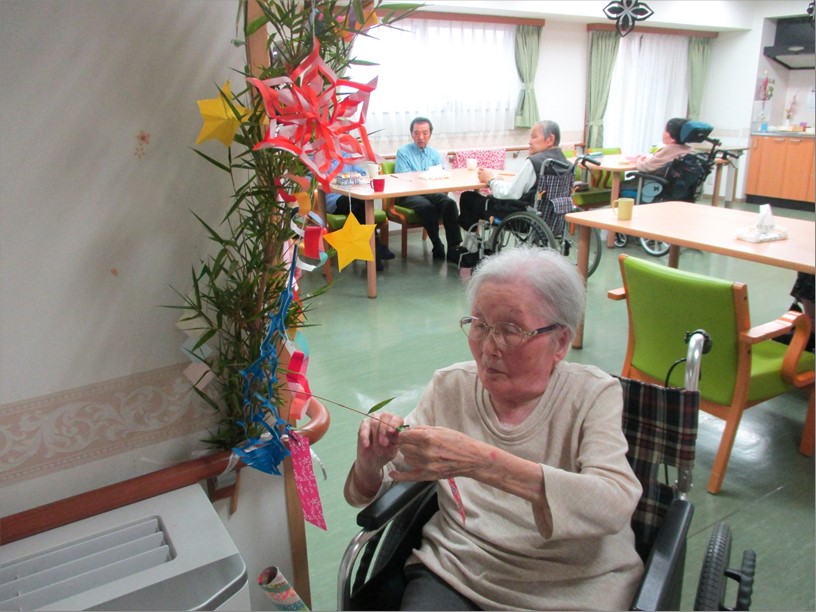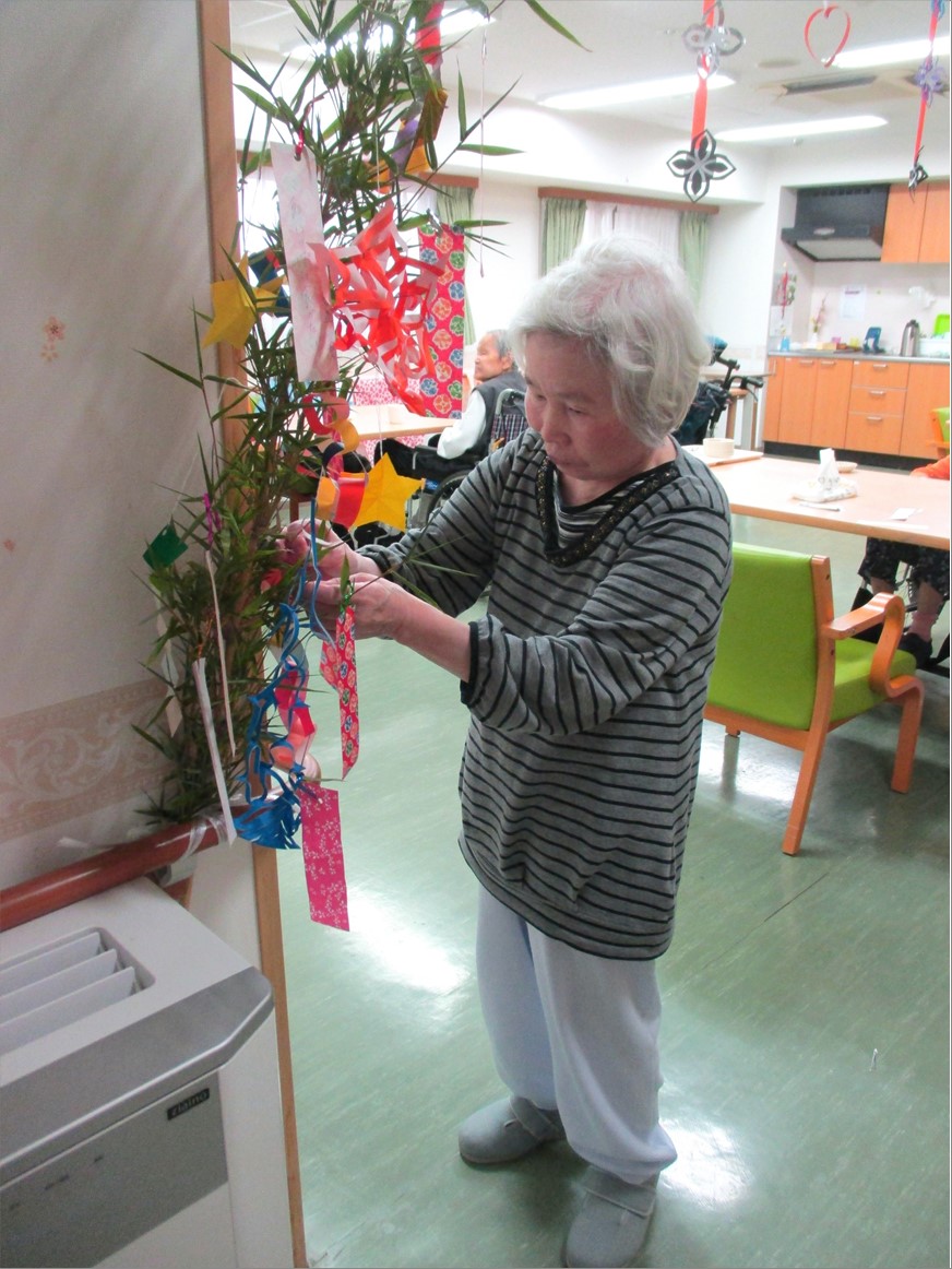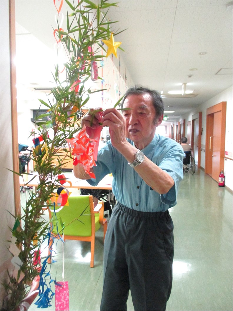 ハイッ、とっても素敵な七夕飾りが完成しました!どうか皆様の願いが叶いますように☆彡