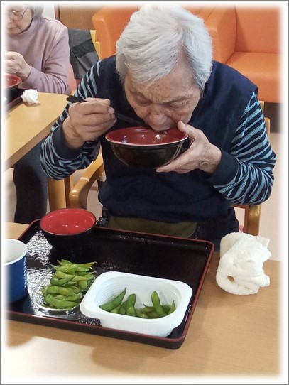 たまには嗜好を変えて…今月は夢庵さんに宅配弁当をオーダーしました。枝豆付きです。皆様おなか一杯に召し上がられました!