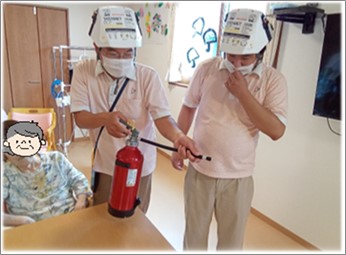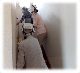 「消防訓練」には、皆さん逃げるのに一生懸命です。階段一つ一つ上るの大変ですが、皆さんがんばりました!