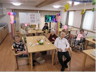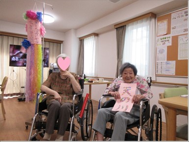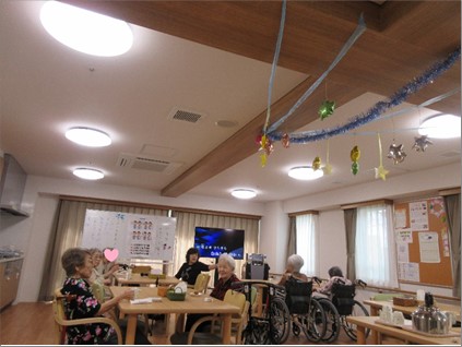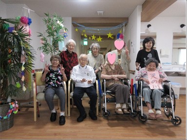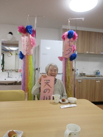 皆さまに書いていただいた短冊を笹の葉に飾り、天の川などイメージした七夕飾りを職員が頑張って飾りつけを行いました!