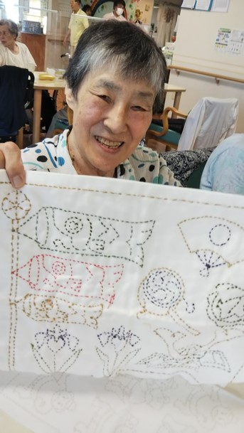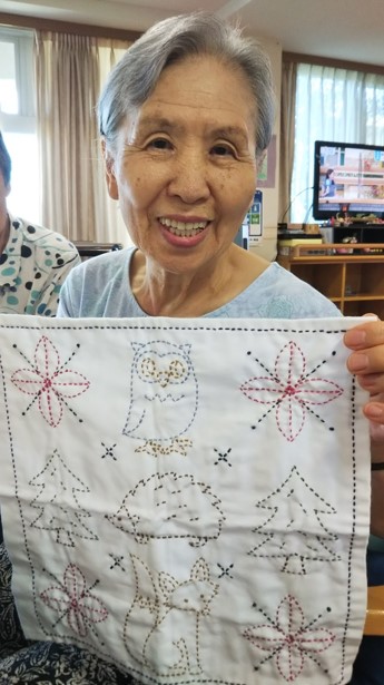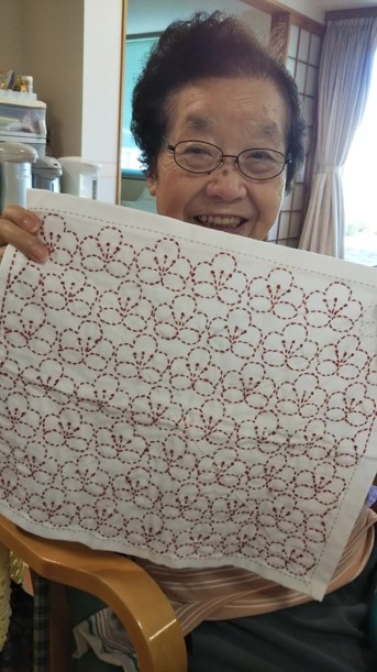 刺し子や紙粘土での作品作り、声を出すことが少なくなっている今だからこそのカラオケや、囲碁や将棋、来月のお楽しみにもつながるカレンダー作りなど、興味をもって頂けたもの、お好きなものに挑戦して頂いております。