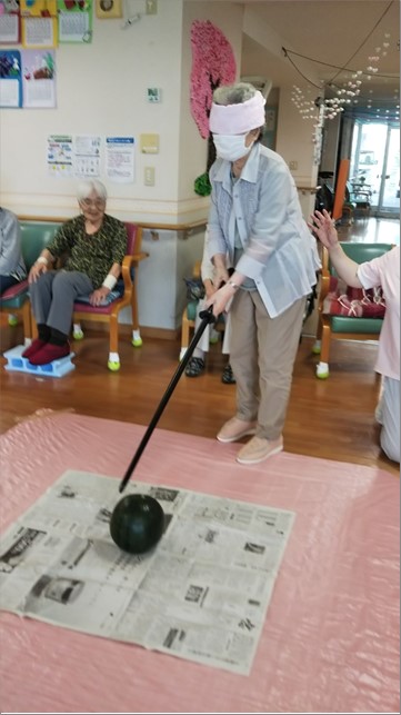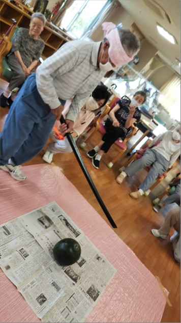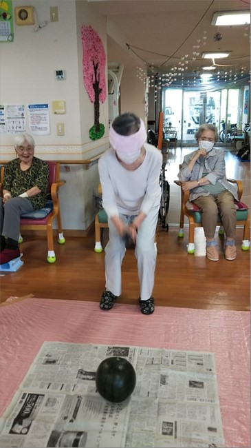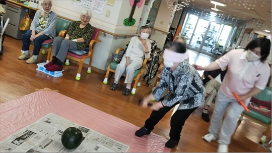 『デイサービスセンター新通』では夏ならではのイベント、すいか割りを計画しました🍉